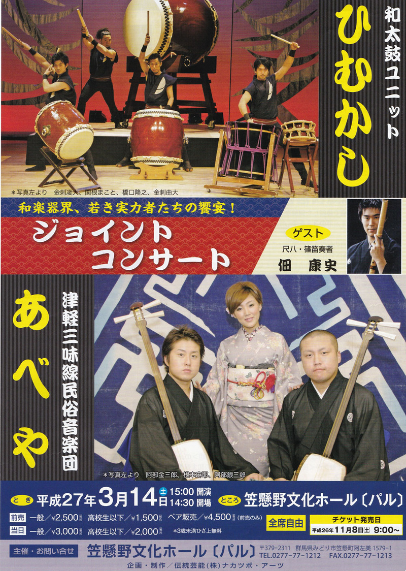 『和太鼓ユニット “ひむかし” & 津軽三味線民俗音楽団 “あべや” ジョイントコンサート』